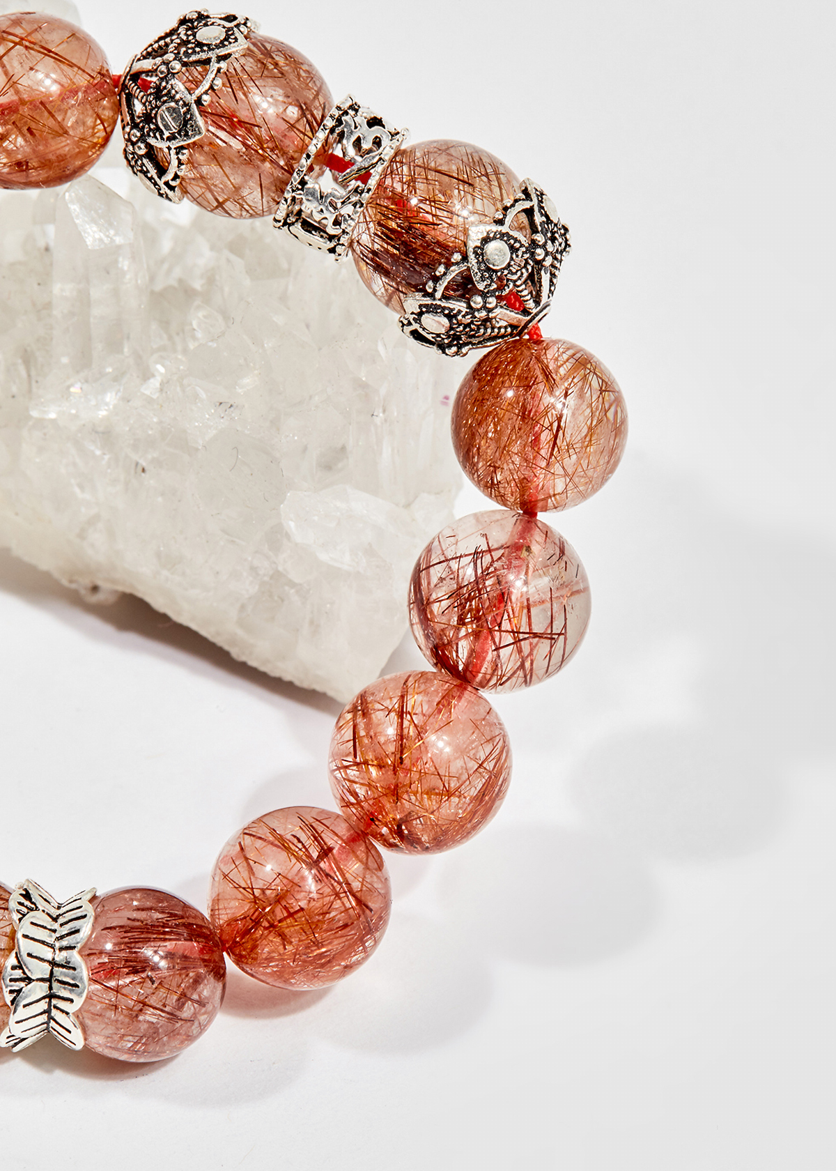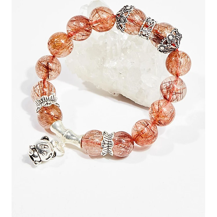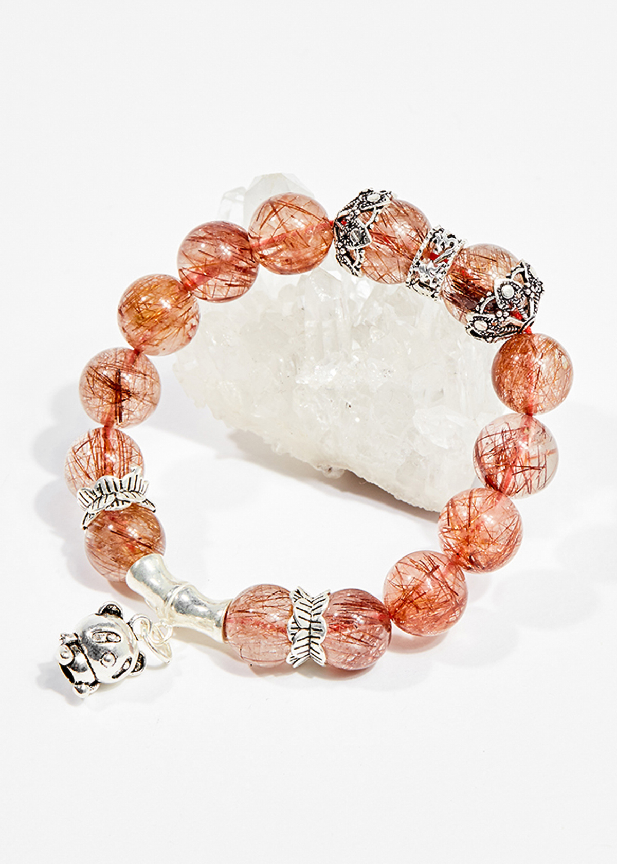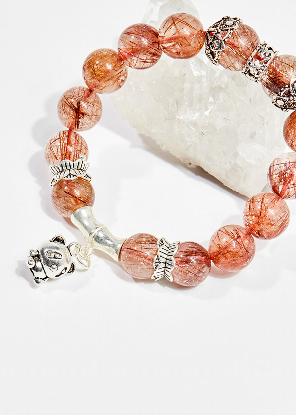 VÒNG TAY ĐÁ THẠCH ANH TÓC ĐỎ CHARM MÈO: