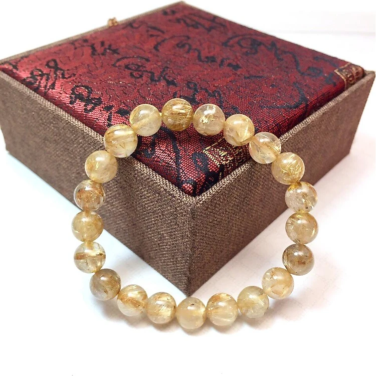 Vòng tay phong thủy đá Thạch Anh Tóc Vàng 8 ly - đá thiên nhiên 100% bao kiểm định