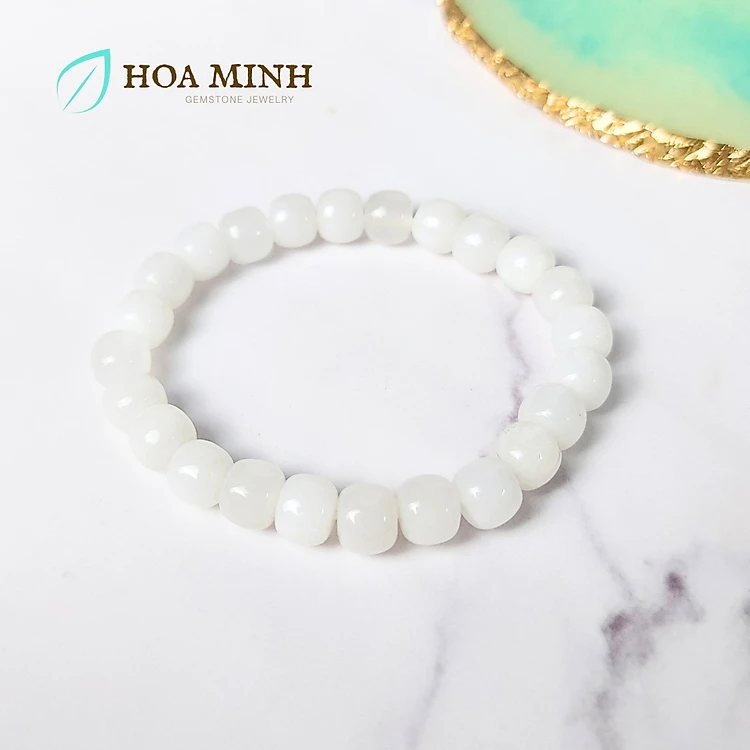 Vòng tay phong thủy đá Thạch Anh trắng sữa hạt vuông size 8 li (hàng kinh tế) vòng tay mệnh Kim, Thủy