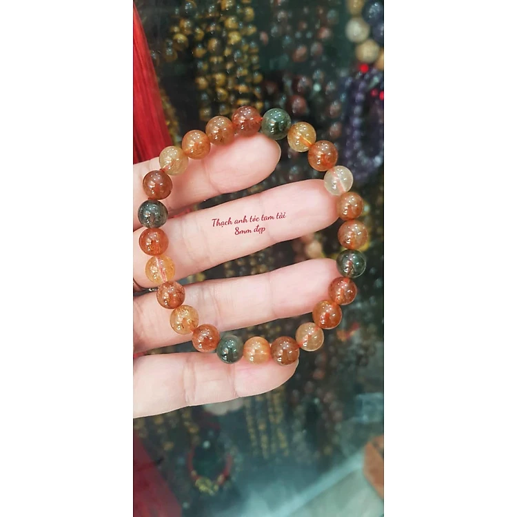 Vòng tay phong thuỷ may mắn đá thạch anh tóc tam tài màu bóng đẹp lắm size hạt vòng 8mm đá tự nhiên đeo tốt sức khoẻ, may mắn, tốt cho công việc đeo lên tay bóng đẹp màu rất xinh đẹp ạ