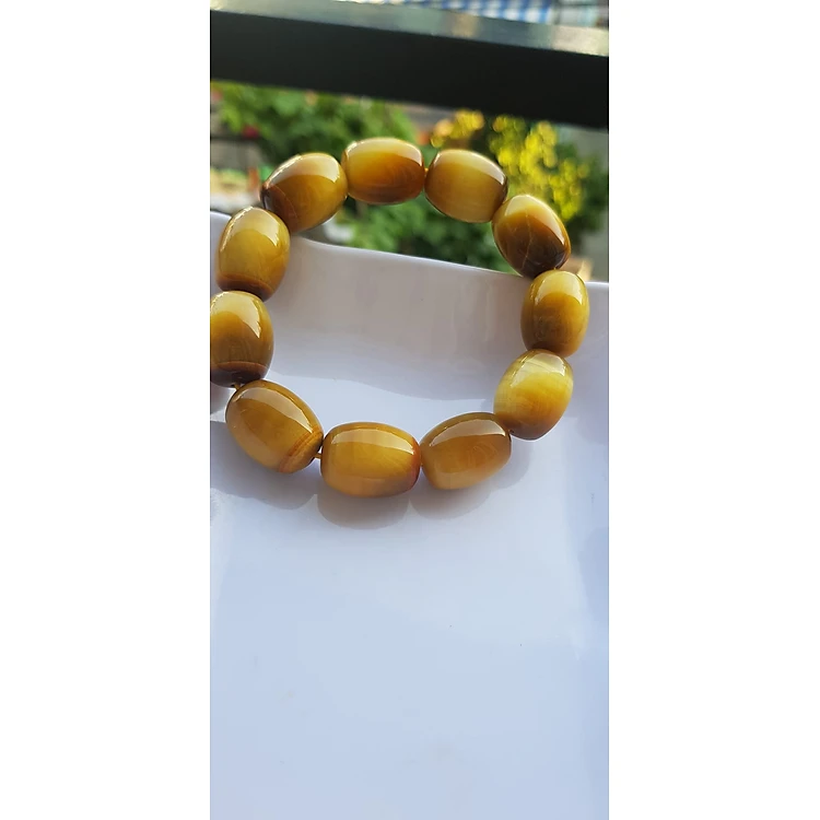 Vòng Tay Phong Thủy Nam Mệnh Thổ Kim Thủy Mới Đẹp Hạt Lu Thống Mới Vàng Nâu bóng đẹp Chất liệu đá mắt hổ tự nhiên vàng nâu bóng đẹp ạ Size hạt 14mm x dài 19mm ạ