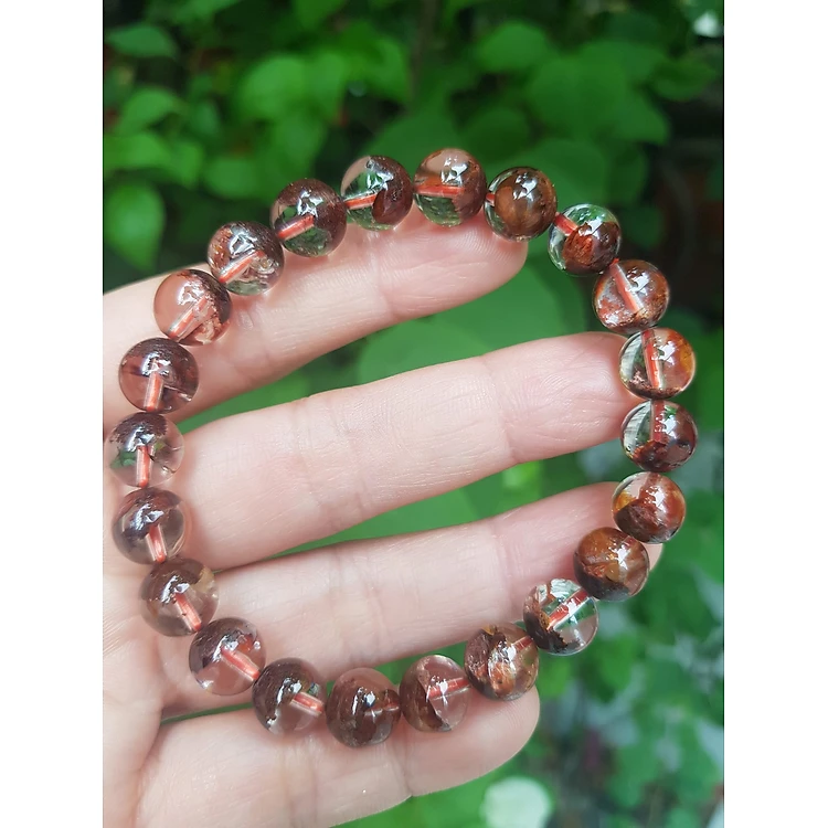 Vòng Tay Phong Thủy Nữ Đá Thạch Anh Ưu Linh Tự Nhiên Bóng Đẹp Size hạt 9mm Màu nâu trắng bóng tự nhiên sang trọng hợp nữ mệnh thổ mệnh kim đeo tốt sức khỏe, hợp tuổi hợp mệnh hợp làm ăn may mắn ạ