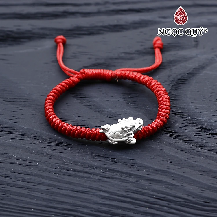 Vòng tay thắt dây đỏ phối charm long quy bạc - Ngọc Quý Gemstones