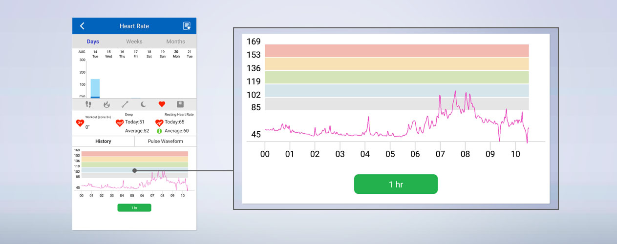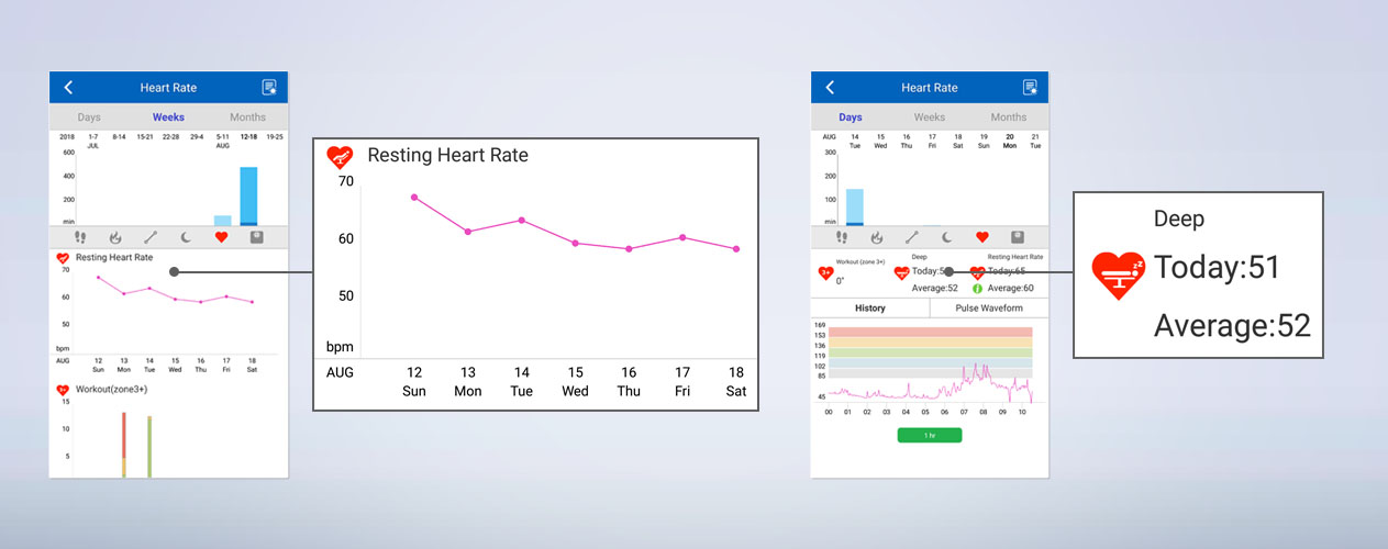 Ghi lại nhịp tim của bạn 24 giờ liên tục với biểu đồ chi tiết về nhịp tim trung bình của bạn.