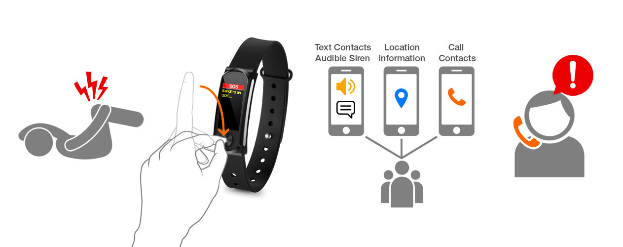Vòng đeo tay theo dõi sức khỏe Q-69HR được tích hợp với nút SOS. Khi bạn gặp phải trường hợp khẩn cấp hoặc tai nạn, bạn có thể chạm nhanh vào nút cảm ứng Q-69HR để bắt đầu quy trình SOS khẩn cấp. Q-69HR sẽ ra lệnh không dây cho i-gotU Life APP để khởi chạy quy trình SOS khẩn cấp, gửi vị trí của bạn và thông báo trợ giúp tới các liên hệ khẩn cấp của bạn qua SMS và sau đó tự động gọi cho họ.