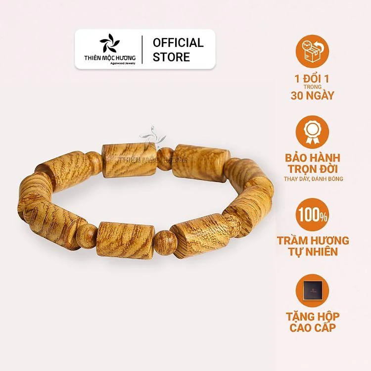 Vòng tay trầm hương trụ trúc chuỗi đeo tay Thiên Mộc Hương quà tặng vòng tay may mắn qua 25 năm tích trầm