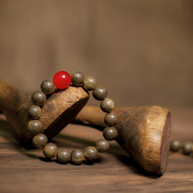 Vòng tay trầm hương tự nhiên loại đẹp nhiều dầu đấu đá tự nhiên mã não đỏ ( trầm size 10mm, đá size 12mm ) dành cho nữ