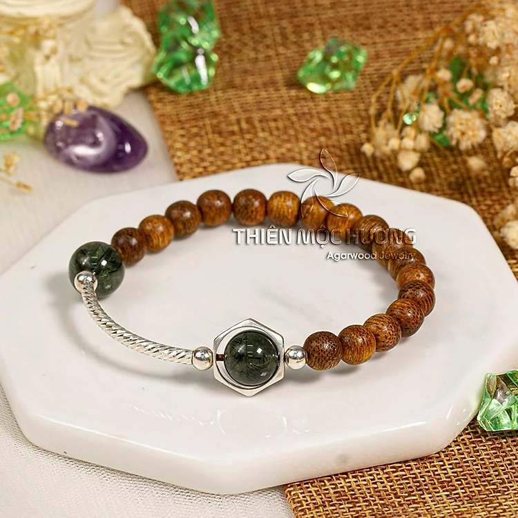 Vòng tay trầm hương tự nhiên mix charm bạc 925 cao cấp - Thiên Mộc Hương - Trầm Tốc Lào - Đá Thạch Anh