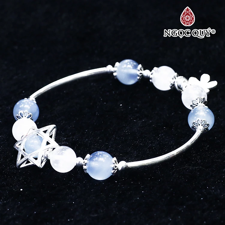 Vòng thạch anh ưu linh trắng phối aquamarine charm bạc - Ngọc Quý Gemstones