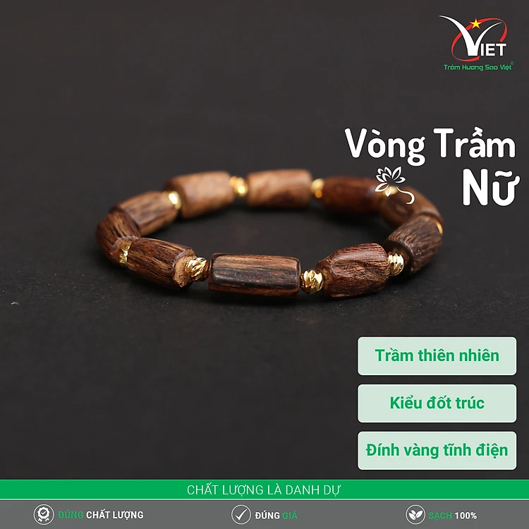 Vòng Trầm Hương Thiên Nhiên - Kiểu Đốt Trúc Đính Hạt Vàng Tĩnh Điện - Tinh Tế Cho Phái Nữ
