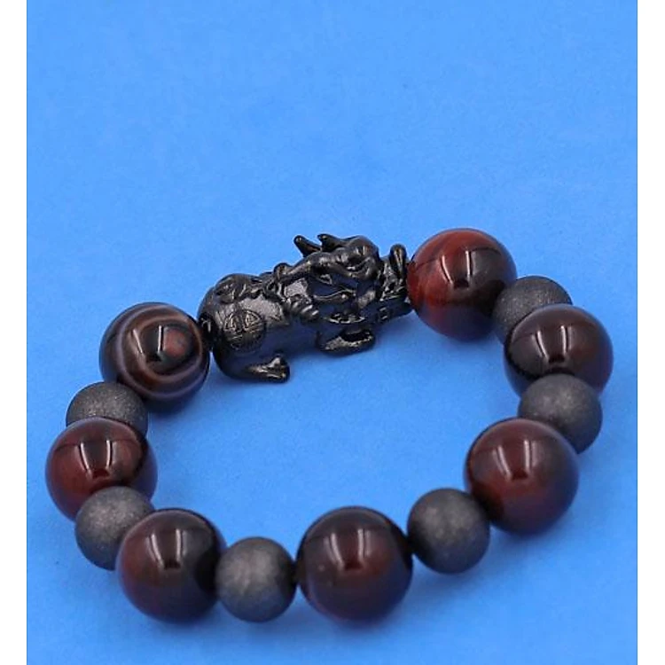 Vòng Tỳ Hưu inox charm Thạch Anh Nâu size 16 ly phối 6 bi - hợp mệnh Thổ, mệnh Kim - Vòng size XXL