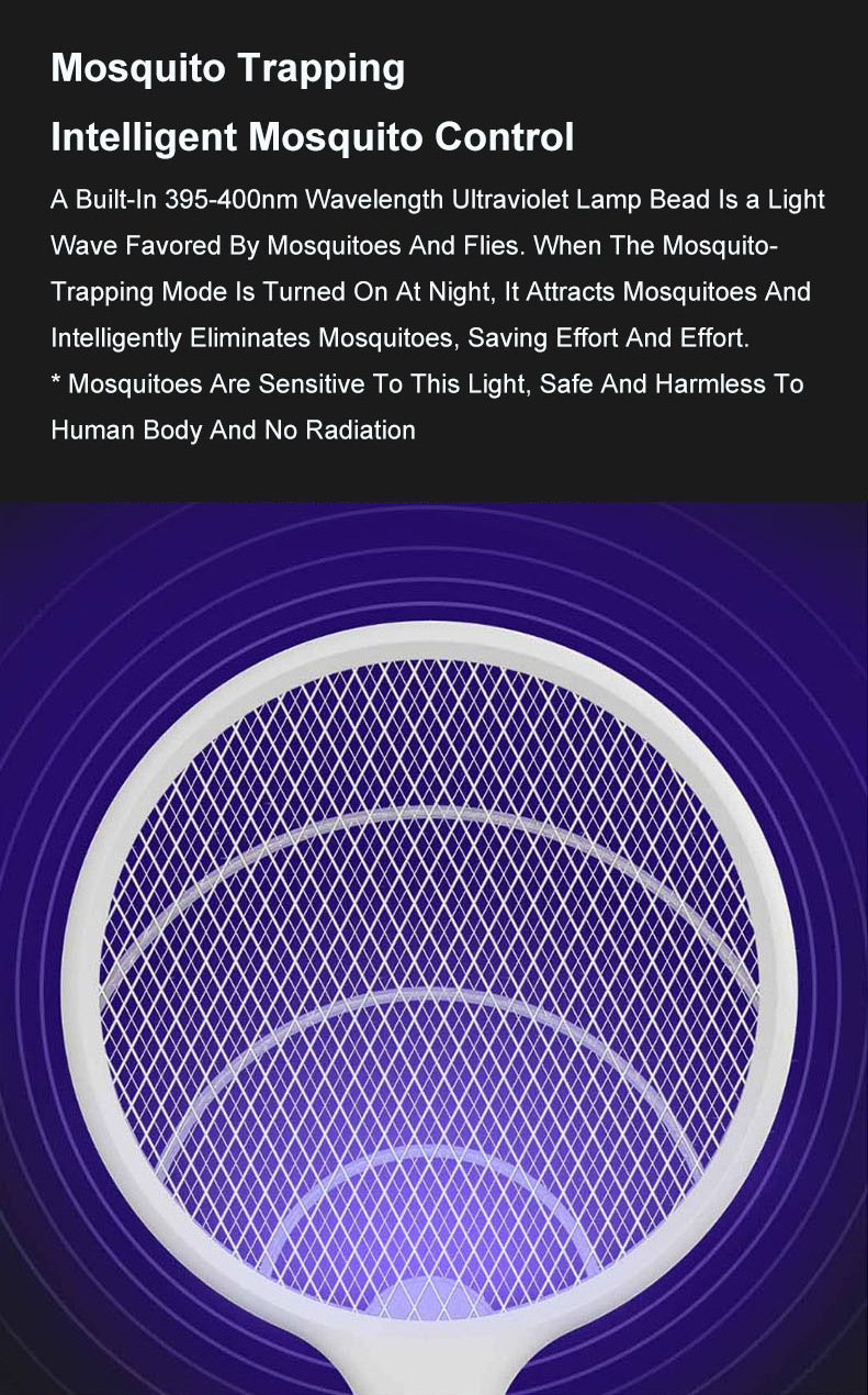 Vợt bắt muỗi Qualitell zs9001 được tích hợp đèn Led UV để nhử muỗi, 3 lớp bảo vệ chống điện giật, an toàn cho người sử dụng, có thể treo vợt trên tường để bẫy tự động, tích hợp pin sạc dung lượng lớn, cho thời gian sử dụng dài, đi kèm theo đế dựng đứng vợt khi sạc điện.
