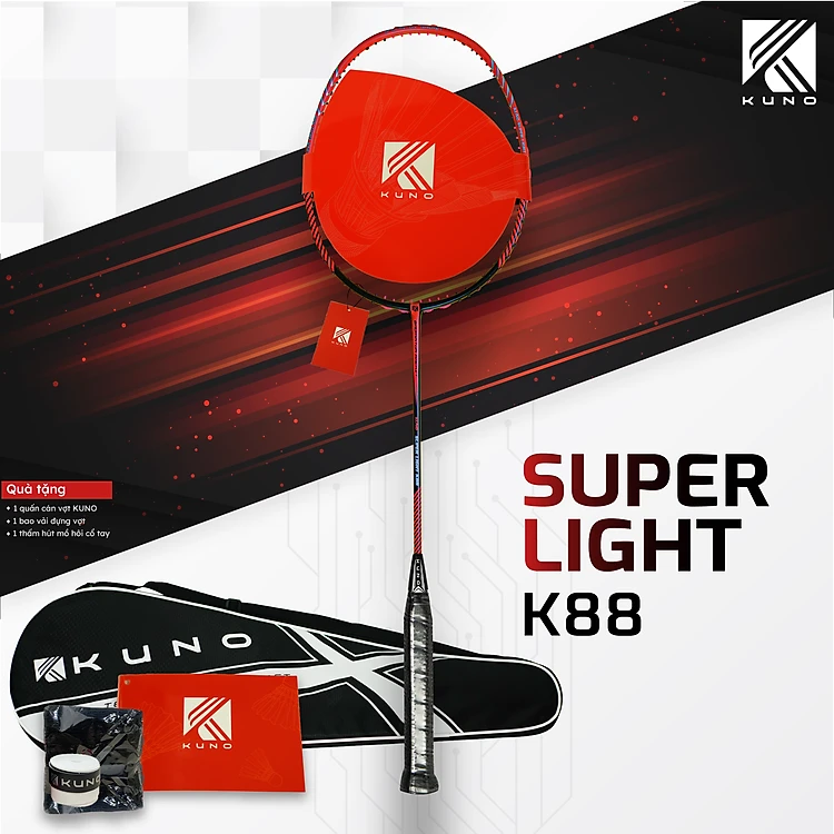 Vợt Cầu Lông Kuno Super Light K88, 6U Thân Dẻo, Công Thủ Toàn, Căng Sẵn 10kg