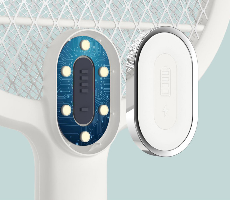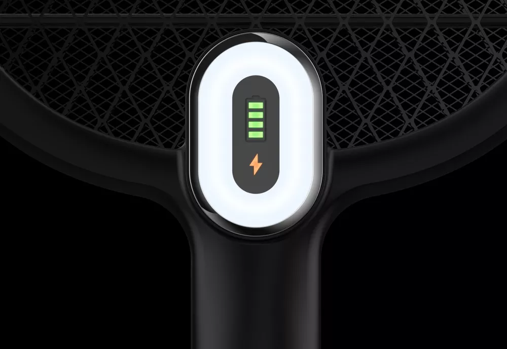 Điện thế bề mặt lưới 3000V, tích hợp 4 đèn led báo hiệu mức độ pin tương ứng. 25% – 50% – 75% – 100%.