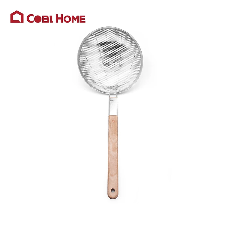 Vợt lưới vớt thức ăn, chiên đồ bằng inox cán gỗ đường kính 25cm / 31cm