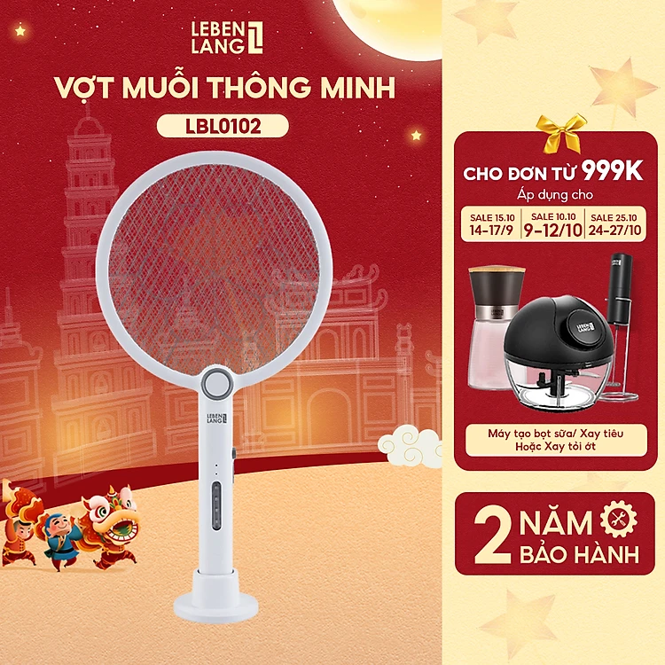 Vợt muỗi điện Lebenlang LBL0102, đèn bắt muỗi 2in1 tự động, 3W, an toàn khi sử dụng, tặng đập côn trùng, bảo hành 2 năm - hàng chính hãng