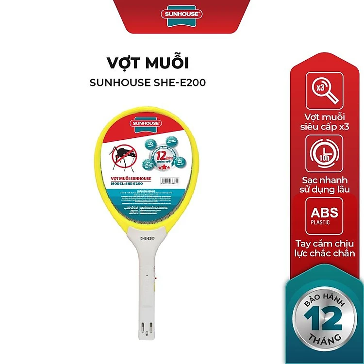 Vợt muỗi SUNHOUSE SHE-E200 màu vàng