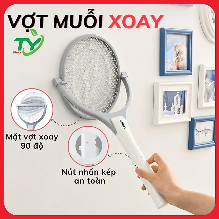 Vợt Muỗi Xoay KAMOT Chính Hãng, Vợt Diệt Muỗi Thông Minh xoay 90 độ 2 In 1 Kiêm Đèn Bắt Muỗi Tự Động Ban Đêm