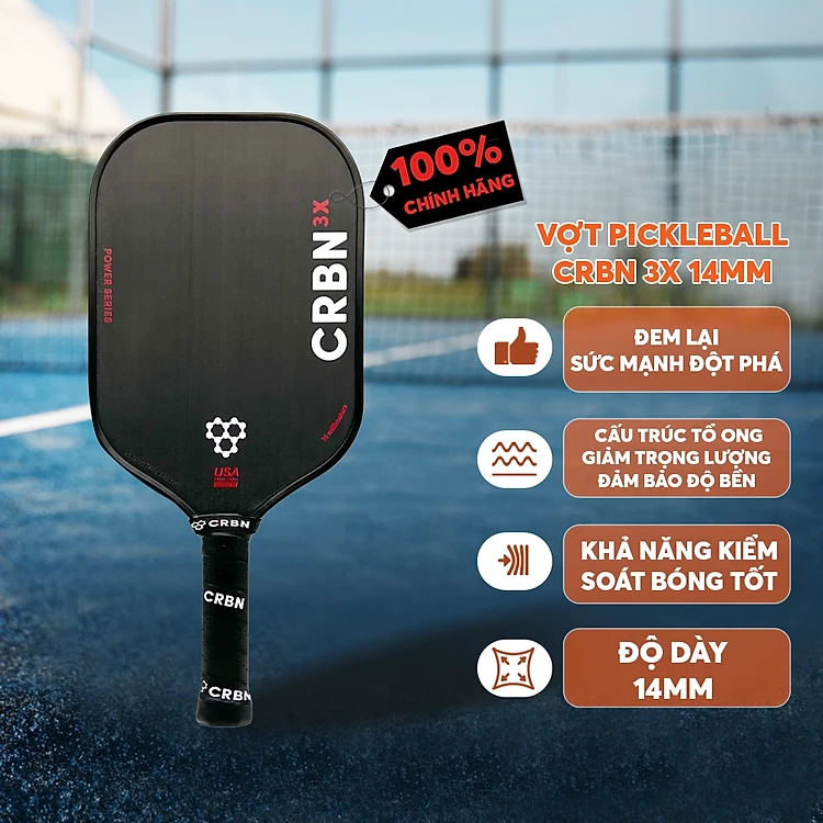 Vợt Pickleball CRBN³ X Series 14mm Cao Cấp - Lõi Carbon Siêu Nhẹ, Đập Mạnh, Kiểm Soát Cực Chuẩn