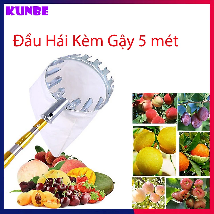 Vợt, Sào, Gậy Inox KUNBE Siêu Chắc, Nhiều Kích Thước Kèm Đầu Hái Trái Cây Đường Kính 16cm, Dụng Cụ Hái Quả Trên Cao