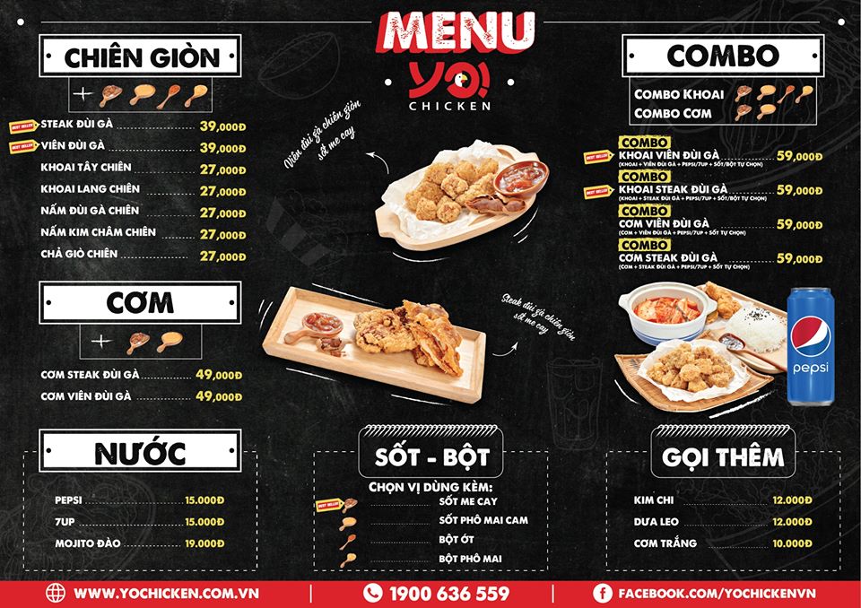 Thực đơn các món gà hấp dẫn tại Yo!Chicken
