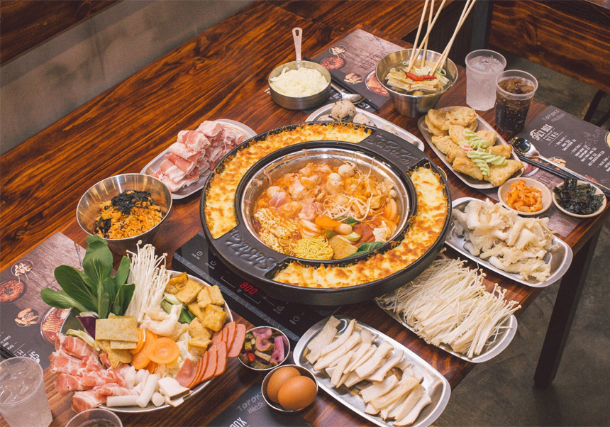 - Cơm trộn Hàn Quốc, kimbap, viền gà phô mai, hải sản lăn bột chiên