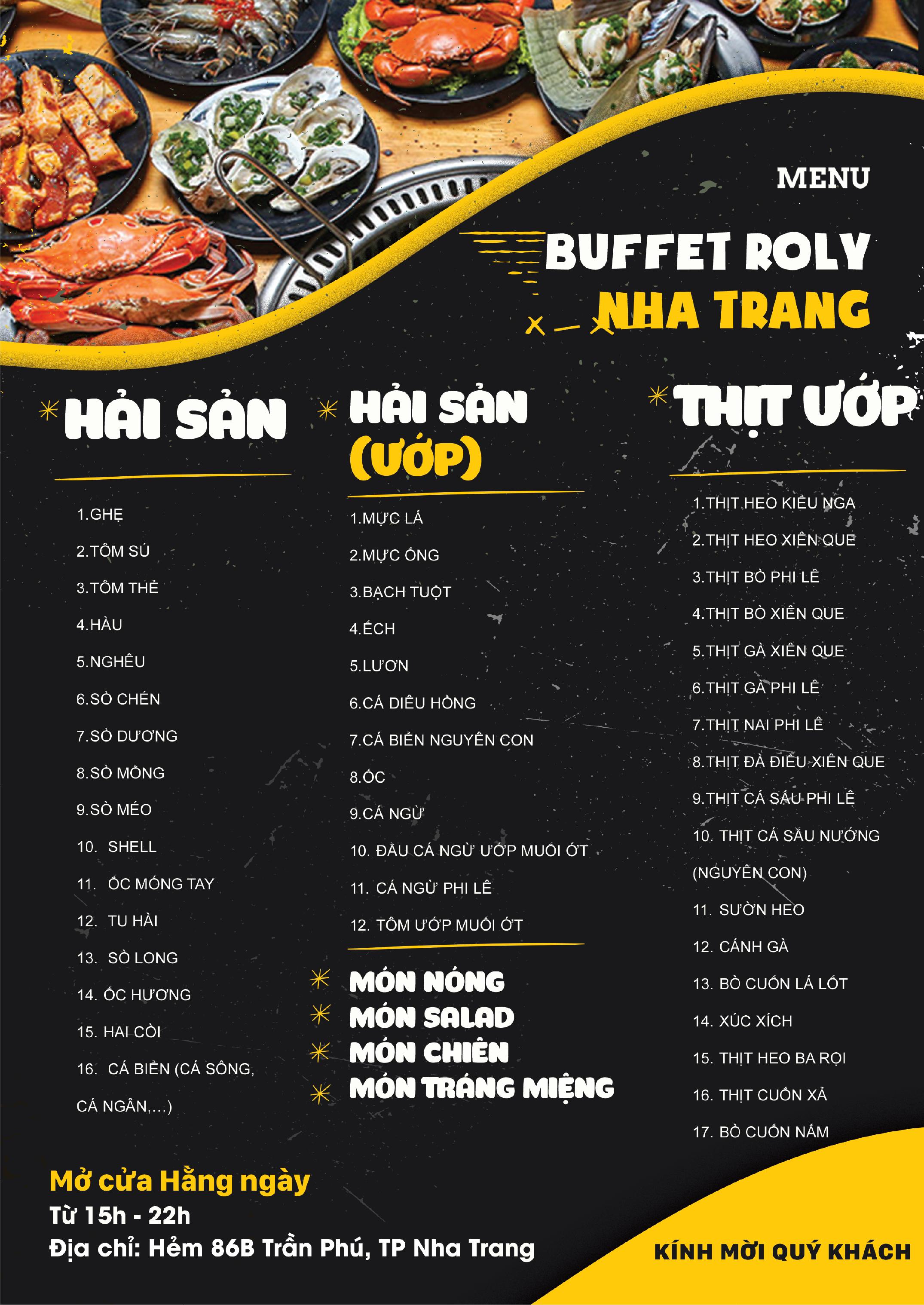 Vườn Nướng ROLY Buffet - Hẻm 86B Trần Phú, P. Lộc Thọ , TP. Nha Trang – Tiệc buffet nướng lẩu đa dạng & hấp dẫn Ra đời năm 2017, Vườn Nướng ROLY Buffet tại Hẻm 86B Trần Phú, phường Lộc Thọ , Tp. Nha Trang, tỉnh Khánh Hòa đến nay đã trở thành địa chỉ quen thuộc và yêu thích của nhiều thực khách, du khách mê lẩu nướng tại thành phố biển Nha Trang. Sở hữu thực đơn buffet ấn tượng với hơn 100 món ăn đa dạng theo ngày, Làng Nướng Roly nổi bật với rất nhiều món nướng hải sản tươi ngon như: tôm, mực, sò điệp, cá nướng nghệ,… cùng nhiều món thịt nướng hấp dẫn, được tẩm ướp kỹ càng. Bên cạnh đó, thực đơn món ăn phong phú từ: khai vị, món ăn chơi – ăn kèm cho đến món tráng miệng đều được nhà hàng chuẩn bị kỹ lưỡng, nhằm mang tới cho thực khách, du khách bữa ăn ngon, trọn vẹn và chất lượng.