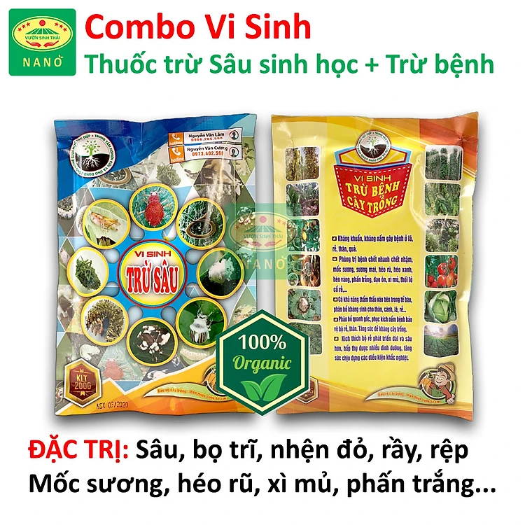 VƯỜN SINH THÁI - Combo vi sinh Thuốc Trừ Sâu Sinh Học và Trừ Nấm Bệnh cây trồng - Với hàng tỷ lợi khuẩn đối kháng - Sản phẩm Sạch - 100% Tự Nhiên