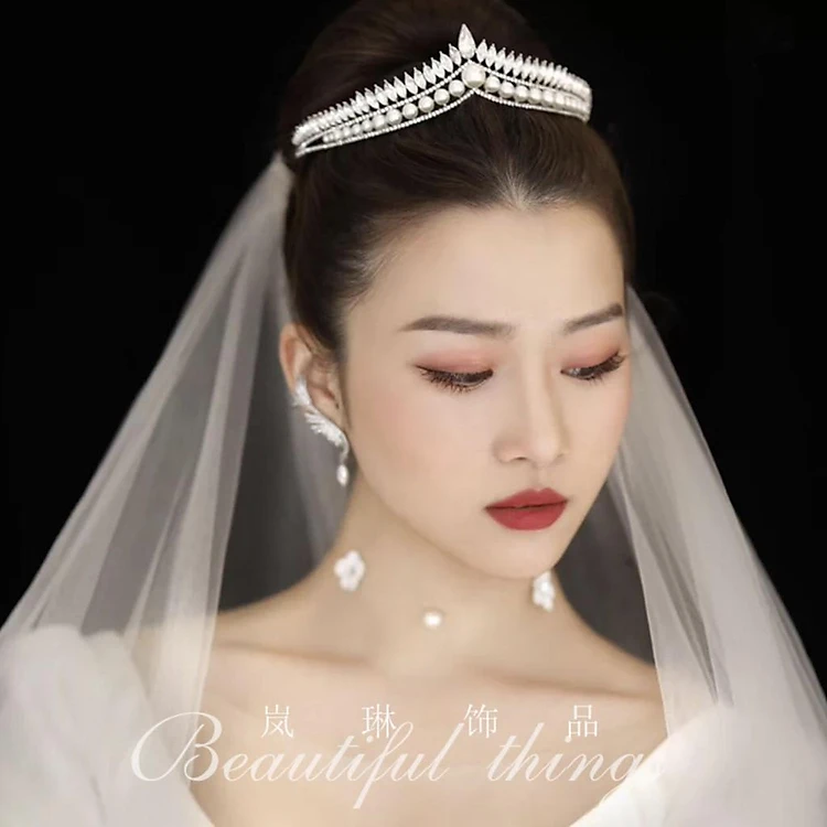 Vương miện cô dâu mẫu mới T92022 chóp viền đá kèm hạt trai Giangpkc