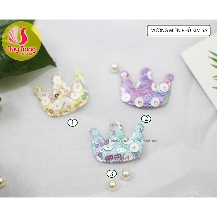 Vương miện phủ kim sa óng ánh. Phù hợp làm kẹp nơ cho bé