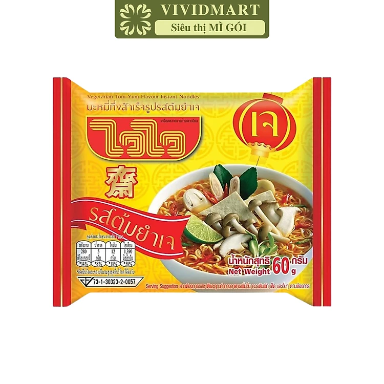 WAI WAI - Mì Wai Wai chay vị Thái chua, Mì ăn liền Thái Lan, Mì chay chua Thailand (60g/gói)