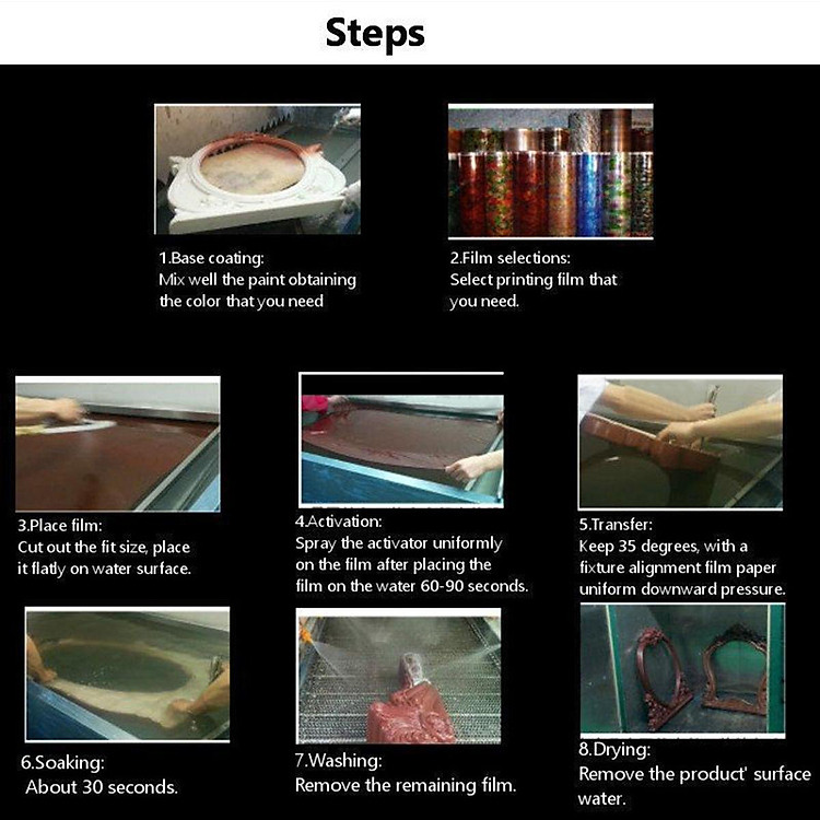 4. Activation: spray the activator uniformly on the film after placing the film on the water 60-90 seconds.