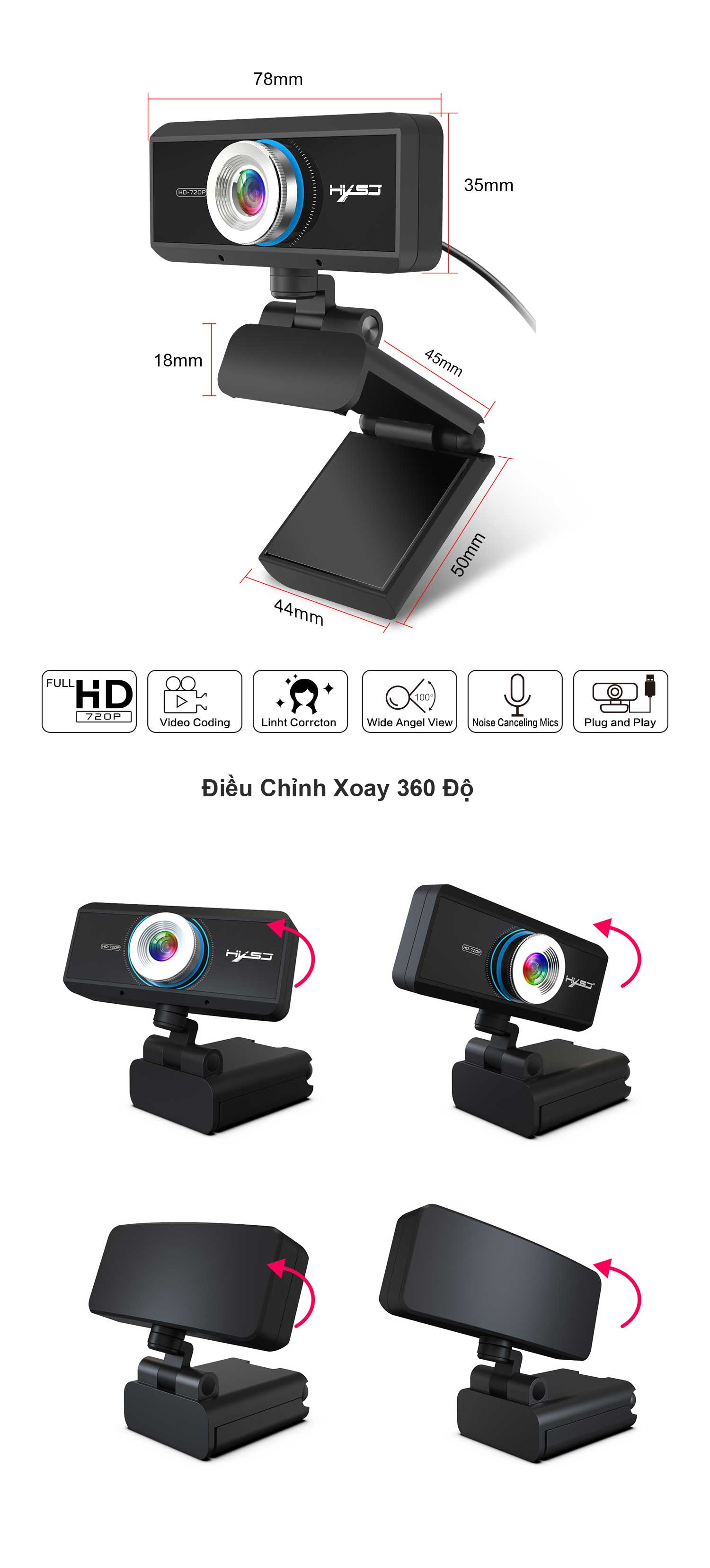 - Thương hiệu cao cấp HD 720P tích hợp micro thu âm, camera máy tính HD.