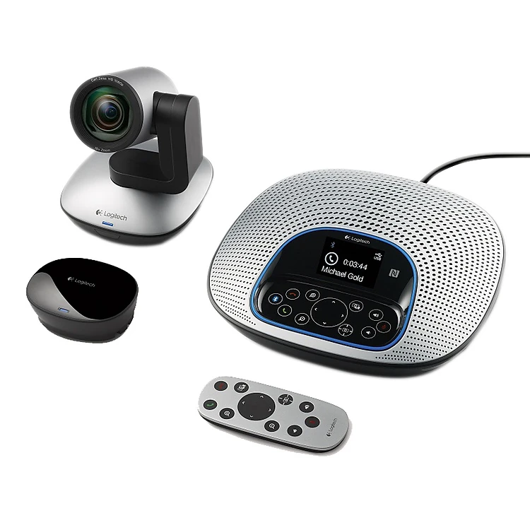 Bạn có thể nhanh chóng kiểm soát các cuộc họp với điều khiể từ xa. Remote tích hợp các nút trả lời / kết thúc cuộc gọi, thiết lập âm lượng lên / xuống, độ nghiêng, thu phóng và tắt âm.