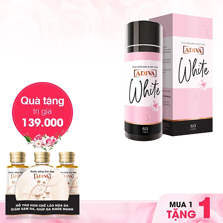 White ADIVA (60 viên) - Trắng sáng toàn thân - Tặng 3 lọ Collagen ADIVA