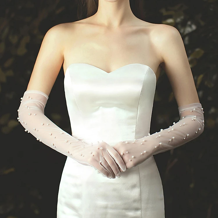 Women Bridal Gloves Evening Wedding Party Costume Pearl Glove Fancy Dress Up
