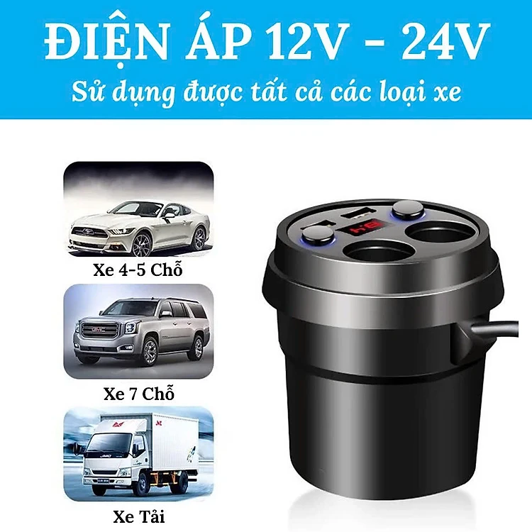 X25 – Bộ Chia Tẩu Sạc Ô Tô Cao Cấp Có Màn Hình Điện Áp, 2 USB, Công Suất Khủng 250W , đèn tần