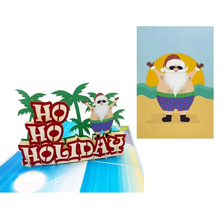X32 - THIỆP NOEL 3D SANTA ĐI BIỂN – HO HO HOLIDAY – MẪU CỰC VUI NHỘN