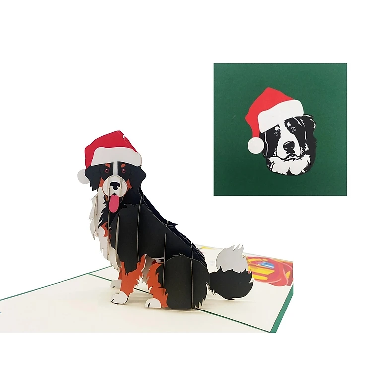 X42 - THIỆP NOEL 3D CHÓ BERNESSE ĐỘI NÓN SANTA – SIÊU DỄ THƯƠNG