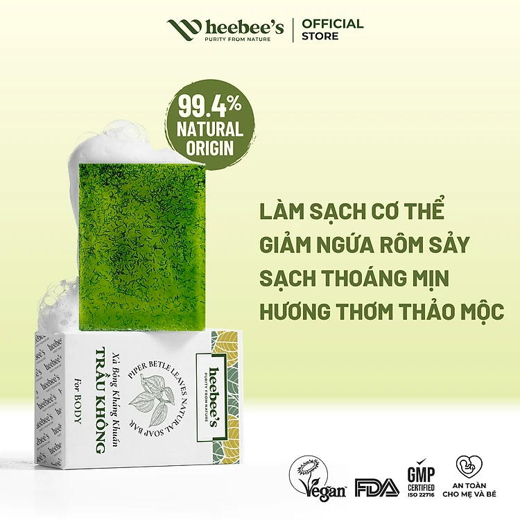 Xà Bông Tắm Thuần Chay Cao Cấp Lá Trầu Không Heebee's Sạch Khuẩn, Ngăn Ngừa Vi Khuẩn, Giảm Mụn Lưng, Giảm Sần 100G