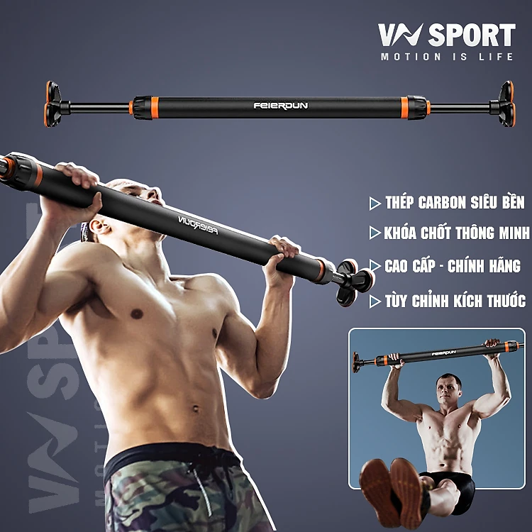 Xà Đơn Gắn Cửa FED-0228 | Kích thước 115-140cm (Chịu lực 400kg - Có chốt khóa an toàn khi gắn xà - Dễ dàng tháo lắp không cần khoan tường)