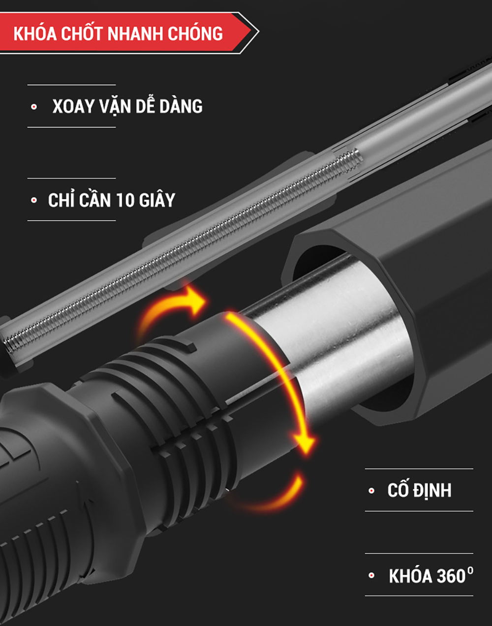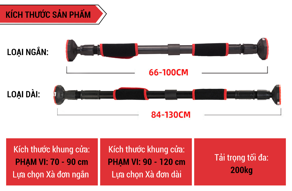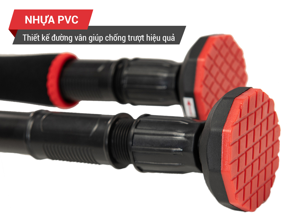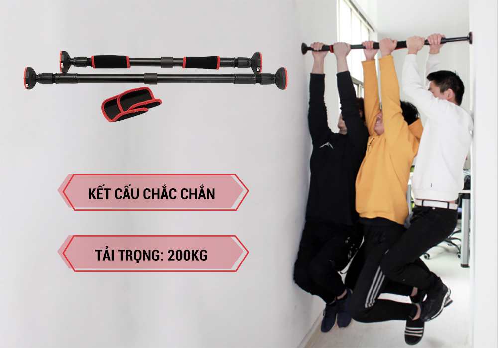 Xà đơn gắn cửa được làm theo công nghệ cải tiến mới rút ngắn thời gian lắp đặt, từ 1 phút xuống chỉ còn 10 giây nhờ hệ thống Pitton nén và cao su ở 2 đầu xà. Bạn chỉ cần ước lượng vị trí gắn lên, xoay ốc vặn khóa chốt là xong. Loại ốc này xoay chiều 360 độ và khóa rất chặt. Xà đơn thông minh khi có thể thay đổi kích thước tùy vào vị trí mà bạn lắp đặt, không cần lo ngại về việc khung cửa quá rộng hay quá hẹp.