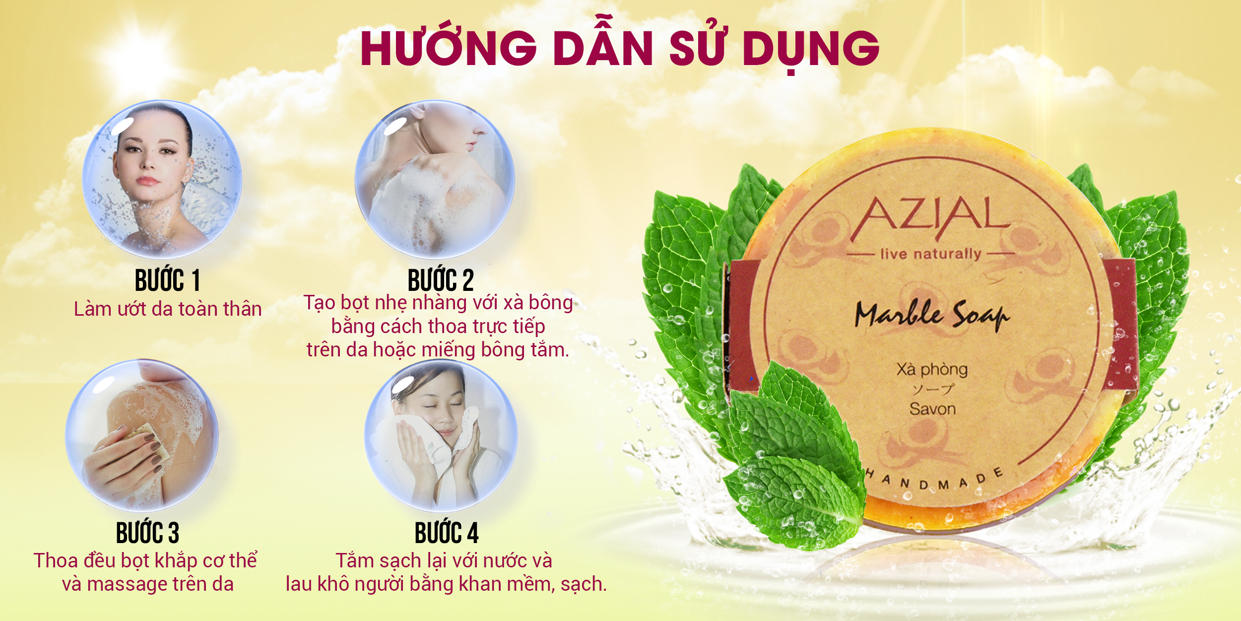 Xà phòng cẩm thạch Azial Marble Soap 100g - Thành phần 100% thiên nhiên.