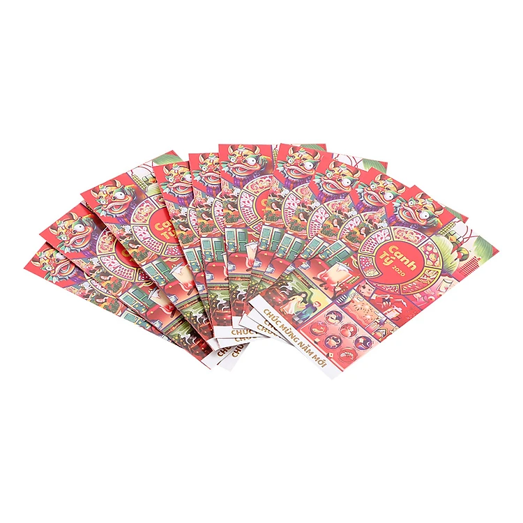 - Xấp Bao Lì Xì Cao Cấp - Canh Tý 2020 được làm từ chất liệu giấy Kraft Nhật dày dặn, mịn và chất lượng, bền màu theo thời gian. Kết hợp cùng với kỹ thuật in ấn sắc nét, tạo nên vẻ đẹp sang trọng.