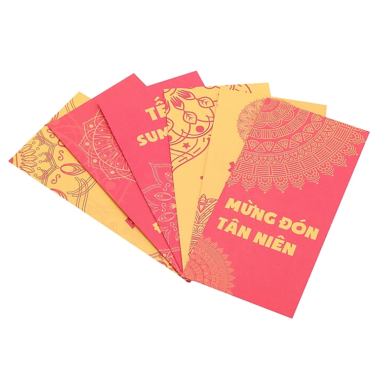 - Xấp Bao Lì Xì Cao Cấp - Mưng Đón Tân Niên (6 Cái / Xấp) được làm từ chất liệu giấy Kraft Nhật dày dặn, mịn và chất lượng, bền màu theo thời gian.