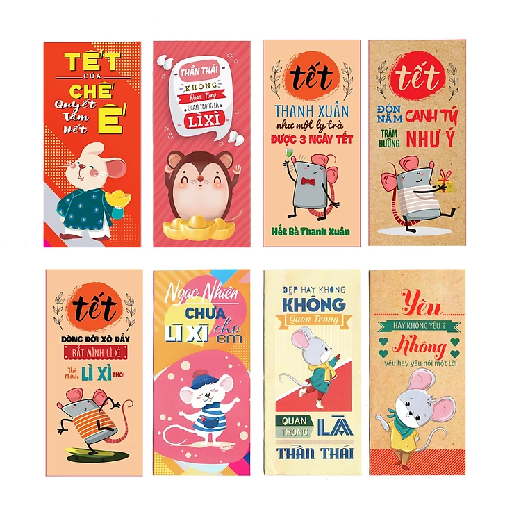 • Hình ảnh và câu slogan hài hước tạo nên sự đặc biệt của bao lì xì vintage này.