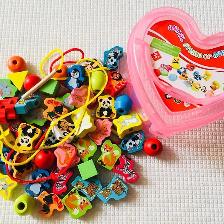 Thích hợp với trẻ từ 18 tháng trở lên. ( những bé trên 1 tuổi bố mẹ sẽ hướng dẫn con cách xâu hạt để con luyện tay nhé!)