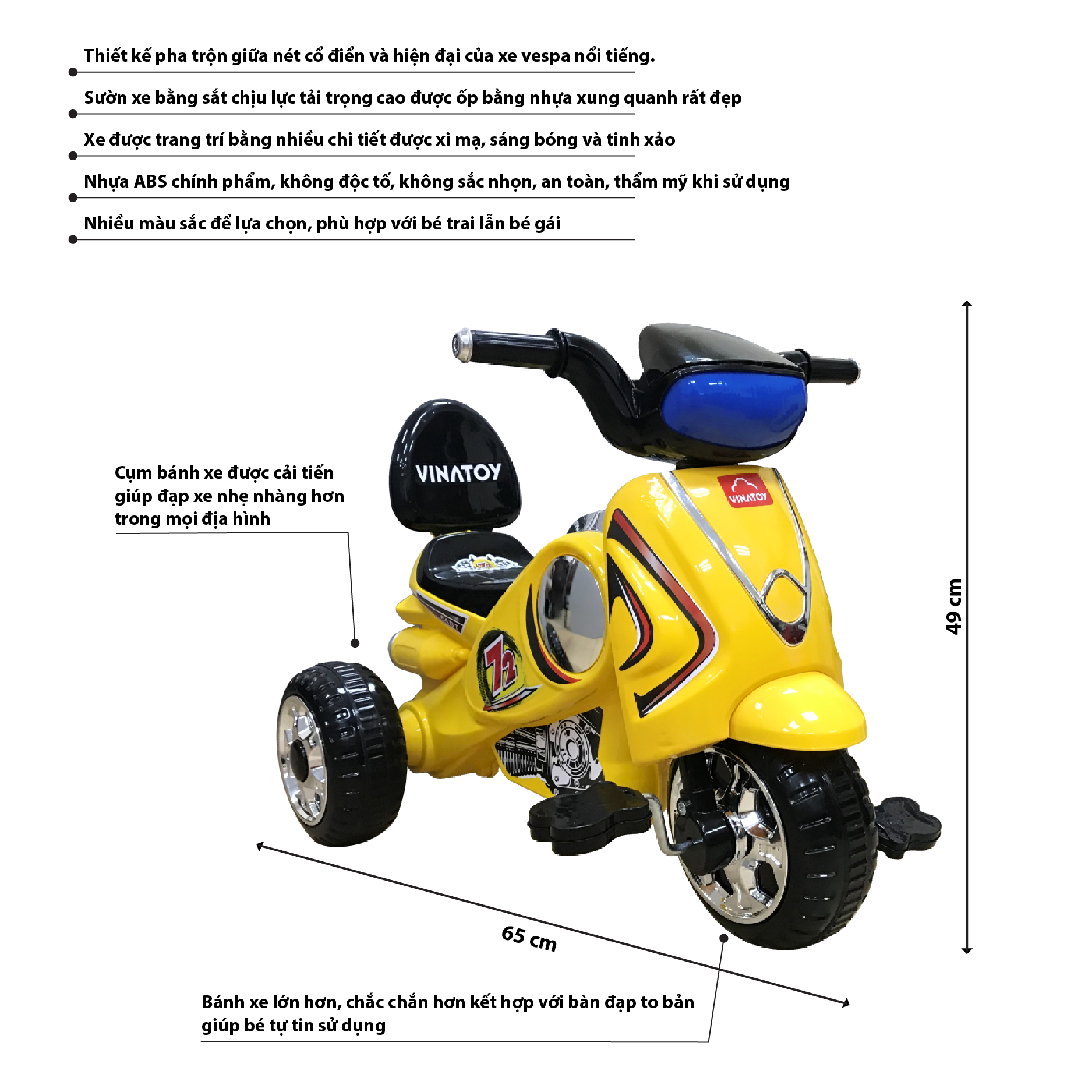 - Thiết kế lấy cảm hứng từ mẫu xe vespa thanh lịch, cổ điển, nay pha nét hiện đại, phá cách, phù hợp cho cả bé trai năng động và bé gái đáng yêu.