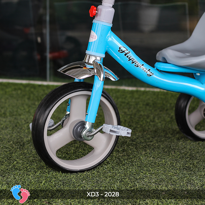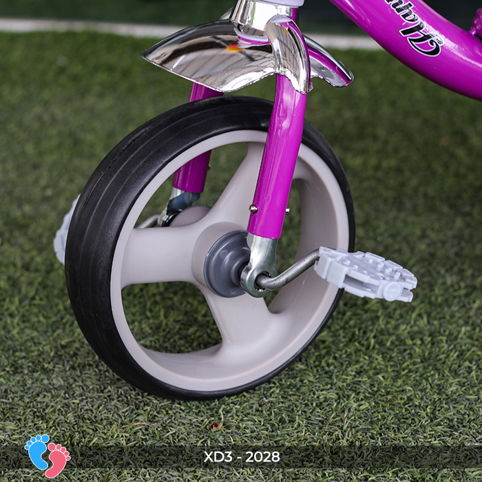 - Ba bánh xe được làm từ nhựa cứng, lốp bằng cao su đặc giúp xe chạy êm.