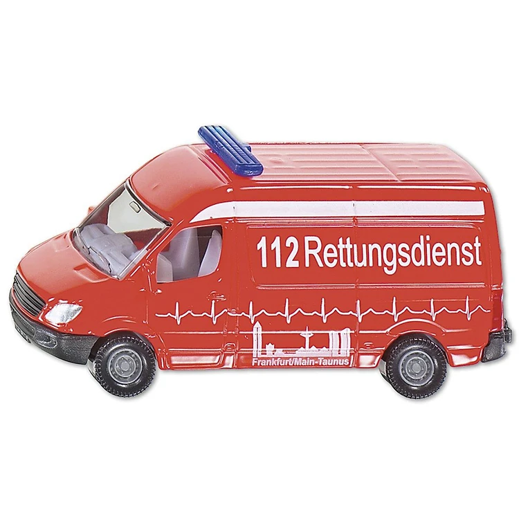 Mô hình xe cứu thương của SIKU với chất liệu nhựa và kim loại có độ bền cao. Toàn thân xe được sơn màu đỏ và đèn báo hiệu màu xanh, bánh xe được làm bằng cao su và có vân như bánh xe thật để tạo độ bám, vỏ xe sơn tĩnh điện giúp xe bền màu và luôn sáng bóng. Với đồ chơi mô hình xe cứu thương của Siku, bé sẽ hoá thân thành bác tài xế đang vội vã chở bệnh nhân đến bệnh viện, bé hãy nhanh lên nhé, phía trước đường đang kẹt xe nữa đấy!
